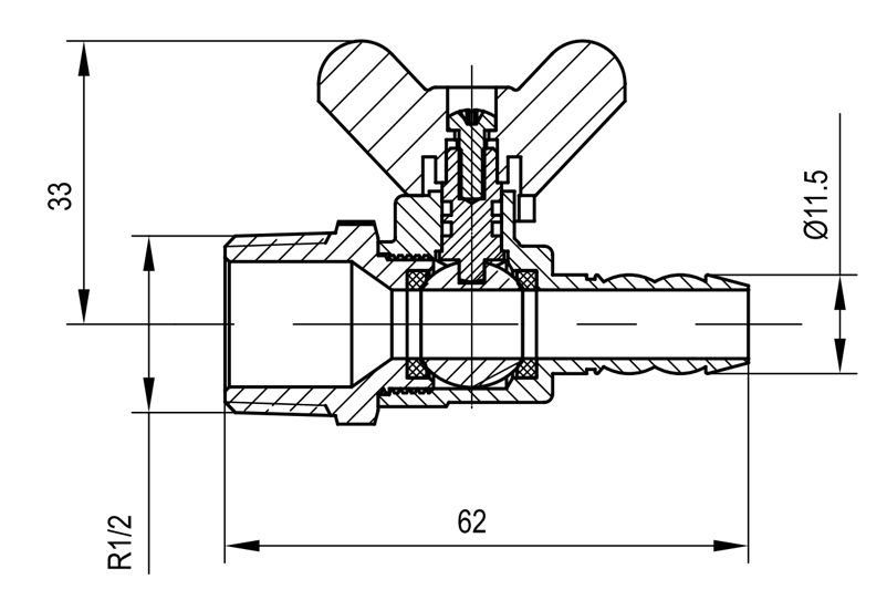 صمام كروي نحاسي YH-207 بمقبض فراشة (موصل خرطوم/M)