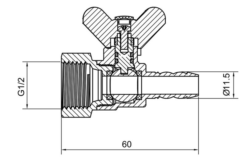 صمام كروي نحاسي YH-216 بمقبض فراشة (موصل خرطوم/F)