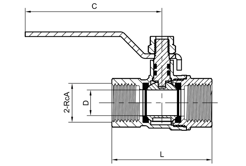 صمام كروي نحاسي كامل المنفذ YH-220 بمقبض طويل (F/F)