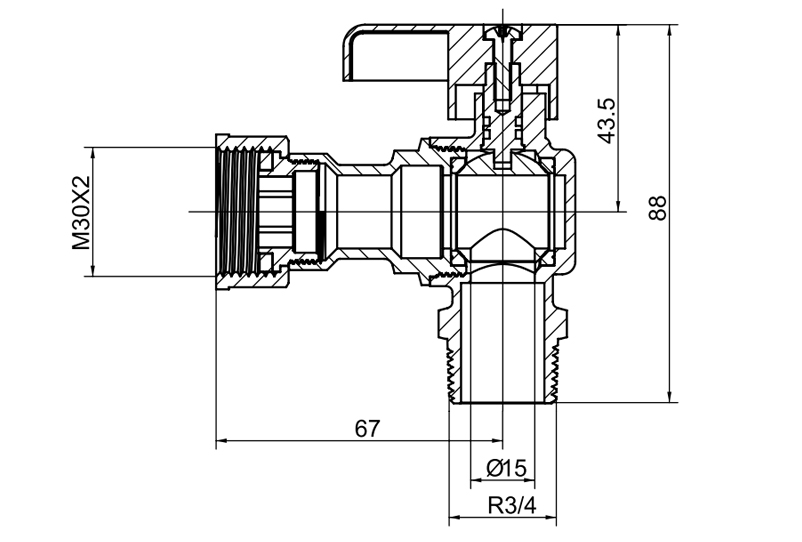 صمام كروي نحاسي بزاوية قائمة YH-215 (F/M)
